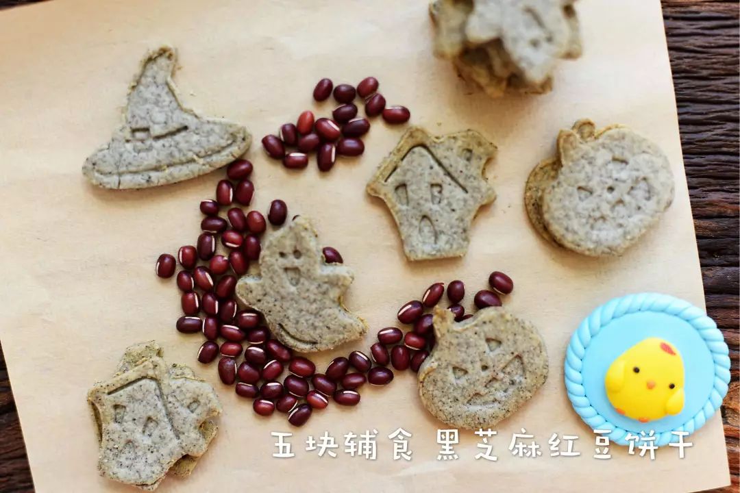 主要食材是黑芝麻和红豆,黑芝麻的营养非常丰富,含钙量非常奥,100克黑芝麻中含有的钙大概有700多毫克,这次饼干使用了30克左右的黑芝麻,里面含钙量有200毫克左右,相当于200毫升甚至更多的牛奶含钙量;红豆的铁含量非常丰富,可以让宝宝在品尝美食的同时来补铁。同时这两种食材都是膳食纤维含量非常丰富的食材,可以帮助宝宝润肠通便。
