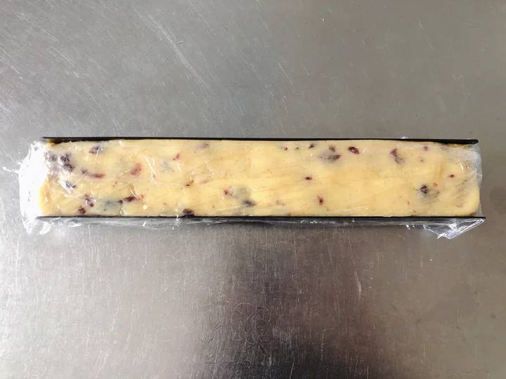 食材:黄油120g、鸡蛋1个、糖粉80g、低筋面粉250g、蔓越莓干80g