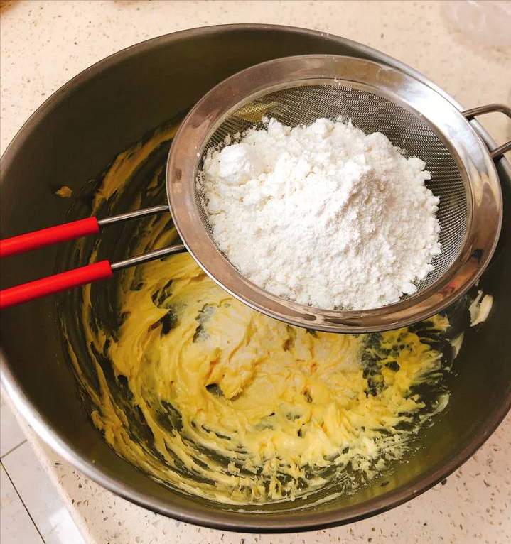 1.将黄油加热软化,加入糖粉搅拌均匀。