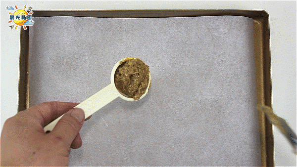 将混合好的面糊以1大茶匙/每个的量摆入烤盘中,并稍加整形成一个圆球状。