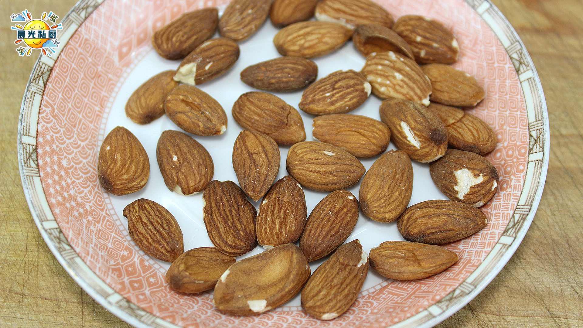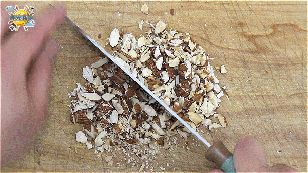 首先将30克的杏仁用刀切成细碎的小颗粒备用。