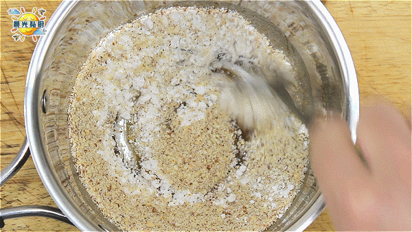 将所有的材料混合搅拌均匀,直接完全没有干粉的状态即可。