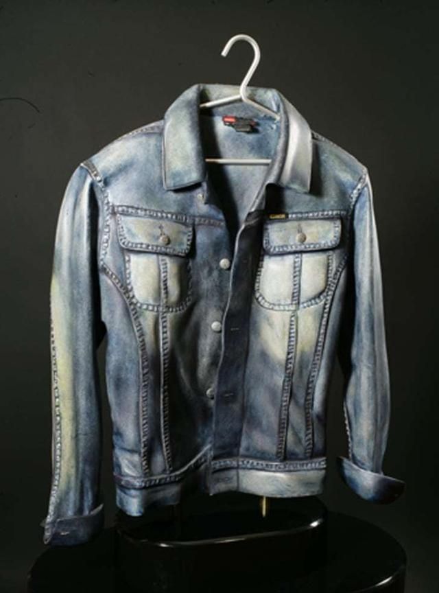 别看照片中的这些“食物”比例不大,但实际上这些石头变成的食物可能是生活中常见食物的两倍多。果汁、酒类等,Robin Antar目前雕刻的也都是大家生活中常见的东西,这件用石头制成的牛仔外套,你能在不知情的情况下看出来吗?