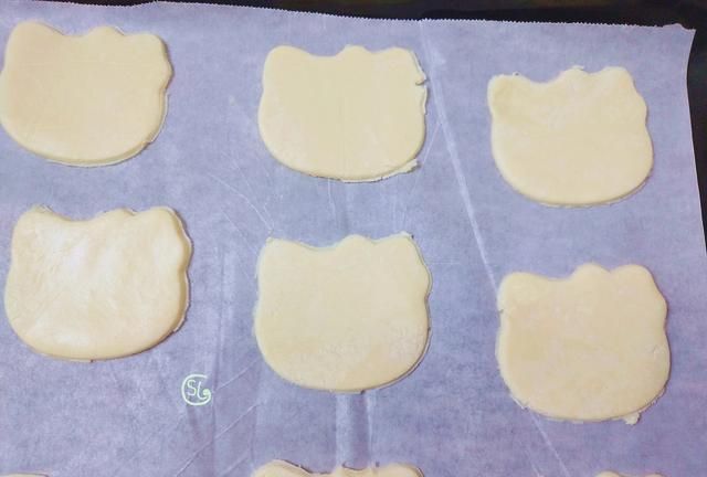 第3步,准备一个饼干模具,或一个圆形的模具,扣出形状,也可以有一些花型模具会更好看。