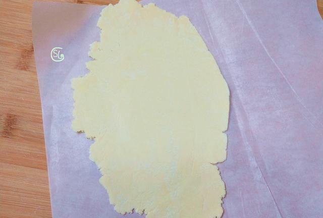 第2步,成团了之后直接放在油纸上,然后用擀面杖擀开,擀成比较薄的薄饼状。