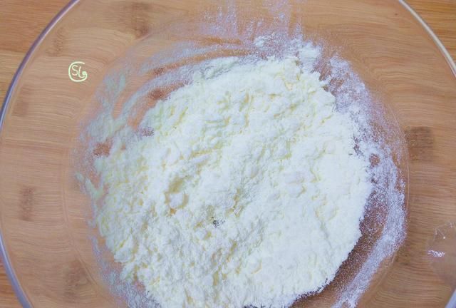 第1步,我们先准备一个小碗,里面加入奶粉,再加入炼乳,简单的拌一拌,戴上手套,下手揉成团,这个是原味的面团,大家也可以做些紫薯味儿的,可可粉,抹茶的,喜欢什么样的都可以加。