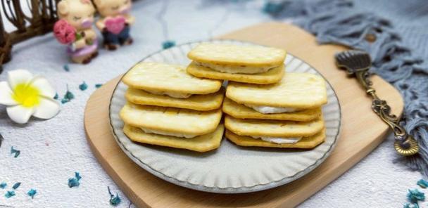 孩子最近想迷上了这个饼干,外皮酥脆,馅料香甜,比买的好吃。这样的夹心饼干也能自己做,外面是两块饼干片,中间夹心甜甜的,一口咬下去特别的好吃。这种夹心饼干肯定比单独的饼干片好吃。在平时出游的时候就能戴上一些这样的夹心饼干,或者是下午茶的时候,配上自己喜欢的饮品,然后搭配这种夹心饼干,格外的美味。