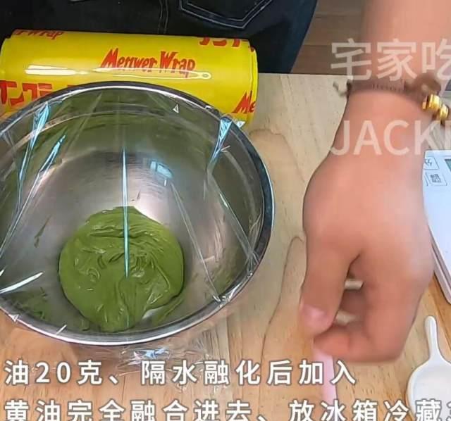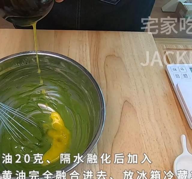 第5步、无盐黄油20克隔水融化后加入,搅拌均匀。