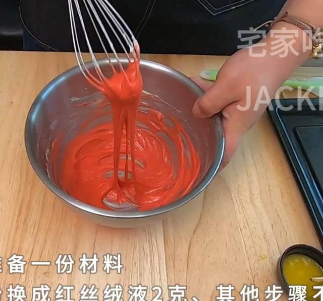 第10步、另外准备一份材料,在面糊的时候加入红丝绒液2克,搅拌均匀。